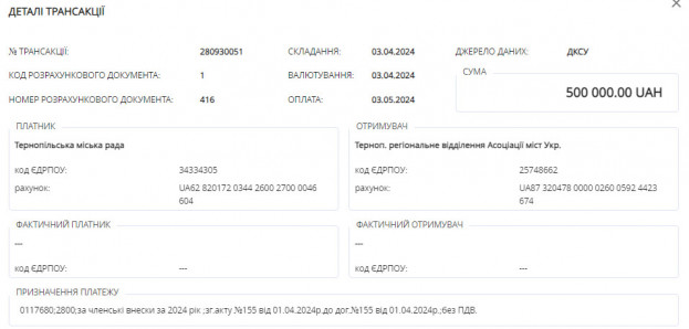 На початку травня ц.р. Тернопільська міська рада перерахувала 500 тисяч гривень Тернопільському регіональному відділенні Асоціації міст України, як членський внесок у цій організації.