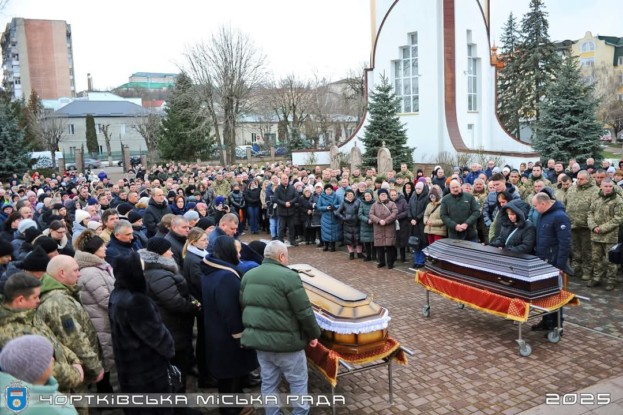 У соборі верховних апостолів Петра і Павла навколішки зустріли відразу двох загиблих на російсько-українській війні Героїв – Костюка Руслана із с. Горішня Вигнанка та Івана Конопельського із с. Джуринська Слобідка.