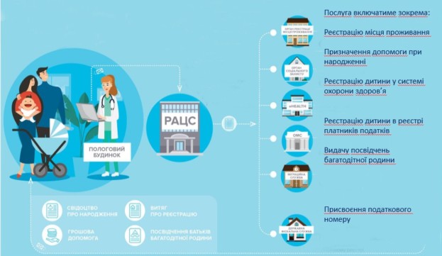 #Електронне Малятко дасть можливість батькам замовити до дев’яти послуг за принципом “єдиного вікна” в лікарні, де народилася дитина, без необхідності заповнювати реєстраційні форми, проводити оплату чи відвідувати додаткові установи. За 10 хвилин можна буде замовити весь перелік послуг.