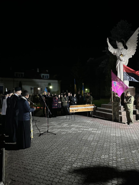 Не зважаючи на досить тривале запізнення кортежу з тілом загиблого воїна Анатолія Коваля з Галущинець (Підволочиська громада), а також не дивлячись на пізню годину – велика кількість людей прийшла біля пам‘ятника Ангелу Хоронителю у Підволочиськ, щоби на колінах вшанувати героїчну смерть воїна.