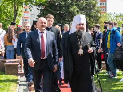 21 травня у класичному університеті Тернополя відбулася знаменна подія – візит Митрополита Київського і всієї України, Предстоятеля Православної церкви України Епіфанія. Ректор Західноукраїнського національного університету Андрій Крисоватий зустрів поважних гостей за давньою українською традицією – з короваєм. Біля університетської каплиці зустріли Блаженнійшого Митрополита Київського і всієї України Епіфанія викладачі, студенти, працівники та духовенство величавою піснею «Христос Воскрес». Його Блаженство, Високопреосвященства, Всечесні отці разом із адміністрацією університету спільно промовили молитву та посадили храмове дерево біля каплиці Різдва Пресвятої Богородиці.