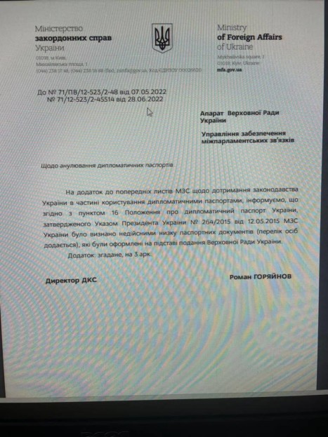 Міністерство закордонних справ України анулювало дипломатичні паспорти 225 нардепам, які не здали їх після офіційних відряджень.