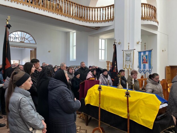 Віддати останню шану Богдану Поляному зібралися рідні та близькі, побратими, священнослужителі, представники місцевої влади та жителі громади.