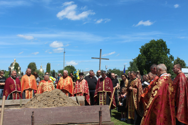 – Плач усіх нас, присутніх, є тією останньою колисковою матері, яка сьогодні бачить свою дитину в домовині. Ніхто і ніщо вже ніколи не поверне дітям батька, дружині – чоловіка, матері – сина. Герої, на жаль, помирають. Але помираючи, дають насіння, як Святі мученики Церкви. На основі цього насіння народжується відвага жити і цінувати своє життя і життя інших, жити гідно, щоб не змарнувати жертви Героїв, які у ці хвилини віддають своє життя за нас з вами, – сказав у проповіді парох храму о. Роман Гриджук.