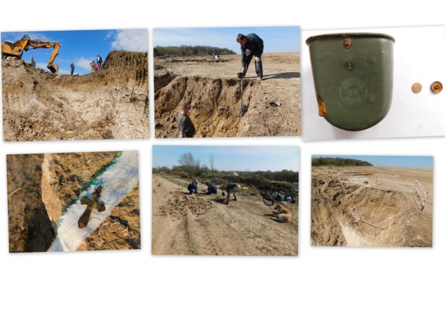 Екскаваторник З. І. Фанга при навантаженні землі на машину побачив людські кістки. Роботи було припинено, викликали працівників міліції, представника Бережанського краєзнавчого музею та запросили для проведення археологічних досліджень представників Тернопільського осередку Всеукраїнської громадської організації «Закінчимо війну» (Ліпянін С.Б., Зиско С.А., Зелінський В.П, Сендзік І.Й.). При проведенні детального огляду місця було виявлено 5 останків людських тіл. Також було знайдено речі побутового та військового призначення. Не всі знайдені артефакти у доброму стані. Проте деякі (фляга (Austria 1915 Werke), австрійська монета вартістю 1 пфеніг, кілька ґудзиків) збереглися досить добре, пролежавши в землі майже 101 рік. Решта (фільтр протигаза, фрагмент ліхтарика, батарейки(!) до ліхтарика, фрагменти взуття та одягу, підривники, мінні осколки, гільзи, шрапнель та ін.) потребують реставрації. Якихось особистих даних про цих вояків поки що не знайдено, лише натільний хрестик, але він, на жаль, не дає змоги ідентифікувати особу чи національність загиблого…