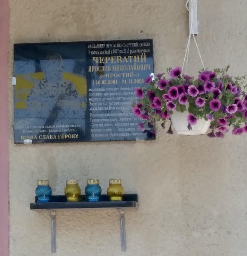 Ярослав Череватий віддав найдорожче – своє життя, захищаючи кордони нашої держави. Відтепер пам’ятний знак на стіні школи буде постійним спогадом нам і наступним поколінням про патріотизм і героїчний подвиг випускника освітнього закладу та захисника рідної Батьківщини.