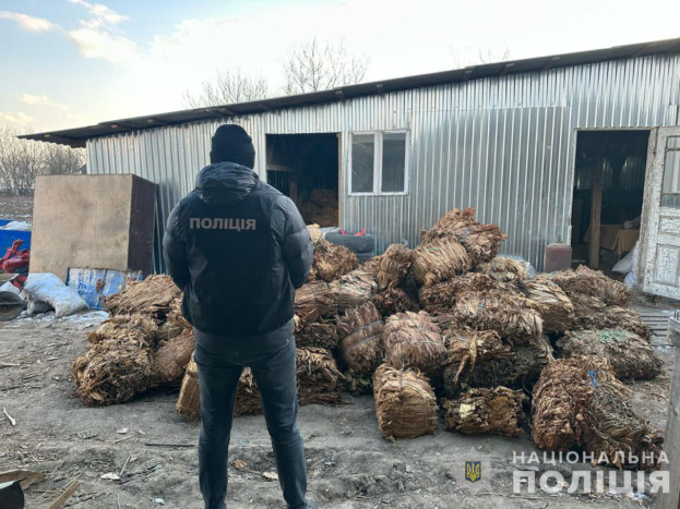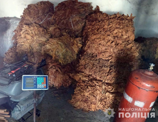 – понад 3 000 кг висушеного та спресованого листя тютюну,