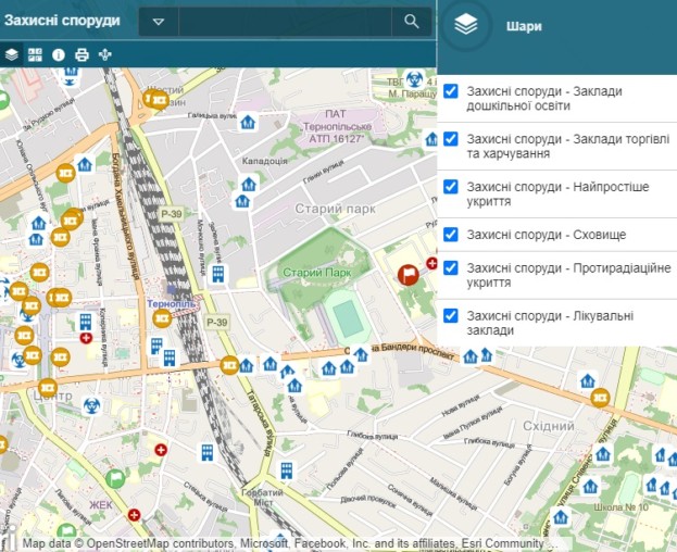З метою швидкого доступу до безпечних місць у випадку повітряної тривоги на інтерактивну карту захисних споруд Тернополя нанесено додаткові місця укриттів.