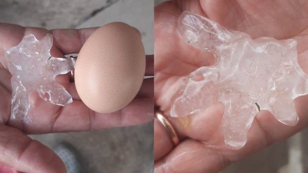 Село Горинка, 8.06.25, пронісся смерч. Був страшний гул, летів град прямо кусками. На фото град вже менший після грози”, — йдеться у дописі.