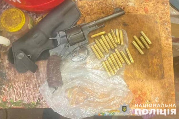У ході проведеного обшуку було знайдено та вилучено предмети ззовні схожі на пістолет системи «Наган», пістолет-кулемет іноземного виробництва «Скорпіон» та майже тисячу набоїв різних калібрів. Речові докази вилучено та направлено на експертизу в НДЕКЦ.