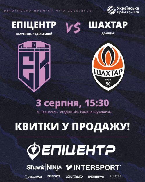 Сьогодні, 16 липня, близько 12.00 на офіційному сайті ФК «Епіцентр» з Кам’янець-Подільського (Хмельницька область) було оголошено про старт продажу квитків на матч Української Прем’єр-ліги «Епіцентр» – «Шахтар» (Донецьк), який 3 серпня о 15:30 відбудеться на Тернопільському міському стадіоні імені Романа Шухевича.