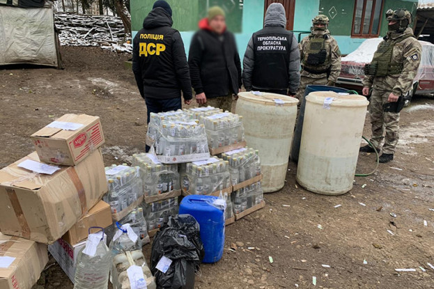 П’ять місяців працювали три «чорні» ґуральні, організовані завклубом і ще двома його помічниками на Монастирищині. Пляшки з підробленими горілками «Пшенична» й «Хлібний дар» користувались неабияким попитом у сільських крамницях, барах та ресторанах Тернопільщини, Львівщини, Івано-Франківщини. Про обсяги так званого виробництва яскраво свідчать цифри: під час обшуків приміщень правоохоронці вилучили у підозрюваних 1 тис. 990 л спирту, 603 л підробленої горілки (юридичною мовою – розбавленої водно-спиртової суміші), 859 фальшивих марок акцизу й величезну кількість порожніх пляшок!