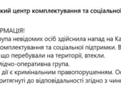 У ТЦК зазначили, що подібні дії є кримінальним правопорушенням. А особи, причетні до нападу, будуть встановлені та притягнуті до відповідальності згідно з чинним законодавством України.