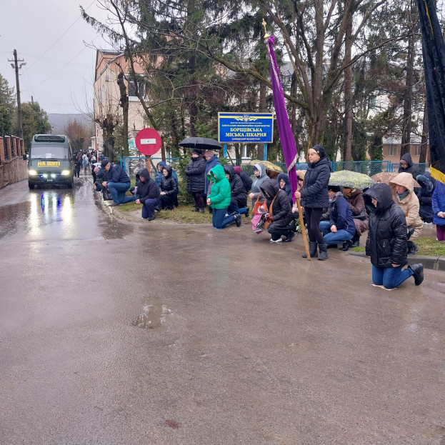 На колінах та зі сльозами на очах жителі Борщівської громади сьогодні зустріли померлого воїна Василя Короленка, жителя села Вільховець смт Мельнице-Подільської громади. Розділяючи страшну втрату, з людьми плакало й похмуре небо.