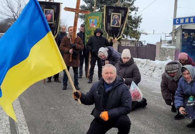 Боєць загинув під час виконання бойового завдання у Бахмутському районі. 2 грудня його тіло вдалось евакуювати. Жителі громади зустріли воїна, стоячи на колінах.