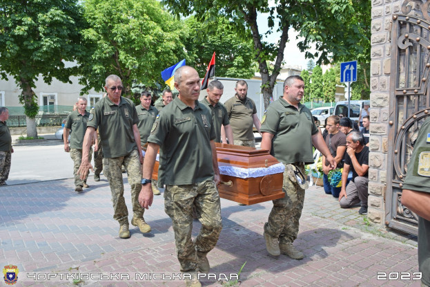 10 липня у Чорткові на церковному подвір’ї Собору верховних апостолів Петра і Павла знову було людно. І знову всі зібрались з гіркого приводу – зустріти у Чорткові тіло чергового загиблого нашого воїна-Героя, земляка… Зустрічали жителя с. Білий Потік, що у Білобожницькій громаді, 25-літнього Олександра Довбенька.