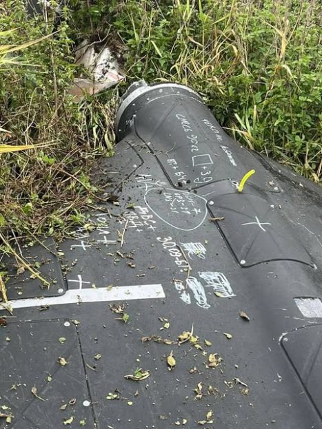 На березі річки у місті Шумськ, Кременецького району, на провулку Чирянка, було виявлено пошкоджений безпілотник типу «Шахед».