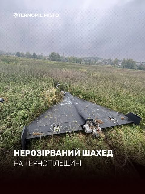 На березі річки у місті Шумськ, Кременецького району, на провулку Чирянка, було виявлено пошкоджений безпілотник типу «Шахед».