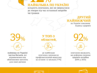 За останній рік майже на третину збільшилася кількість мешканців області, які вважають, що реформа охорони здоров’я потрібна. Тепер цей показник є більшим за середній по Україні (84% українців вважають реформу потрібною) і складає 92% порівняно із 60% у 2016-му році.