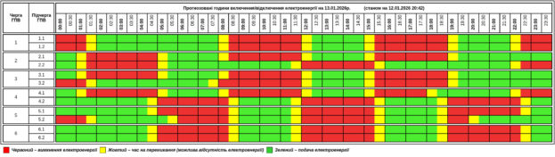 Згідно вказівки НЕК “Укренерго”, 13 січня 2026 року на території Тернопільської області діятиме Графік погодинних відключень (ГПВ).