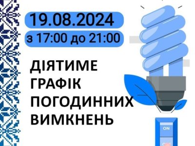 У понеділок, 19 серпня на Тернопільщині прогнозується застосування погодинних вимкнень.