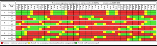 Зідно вказівки НЕК “Укренерго”, 19 січня 2026 року збільшено кількість черг, які підлягають відключенню.