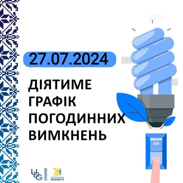 У суботу, 27 липня, на Тернопільщині прогнозується застосування погодинних вимкнень.