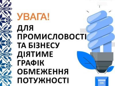 НАГАДУЄМО: ГРАФІКИ ОБМЕЖЕННЯ ПОТУЖНОСТІ (ГОП) СТОСУЮТЬСЯ ПРОМИСЛОВОСТІ ТА БІЗНЕСУ.