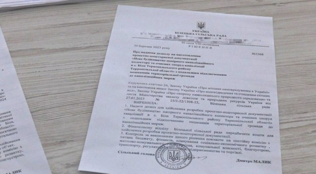 Рішення сесії Білецької сільської ради про будівництво очисних споруд. Суспільне Тернопіль