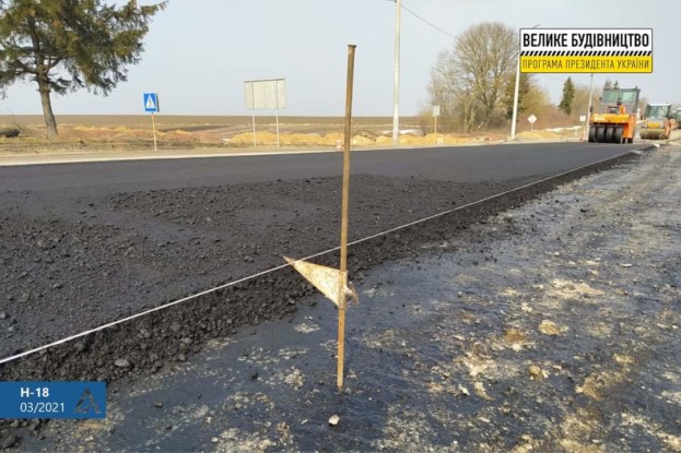 Дорога Н-18 також на ремонті, уже постелене нове асфальтобетонне покриття. Перші 1,5 дороги відремонтовані в 2021 році.