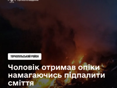 На Тернопільщині чоловік зазнав термічних опіків обличчя й обох кистей намагаючись підпалити сміття