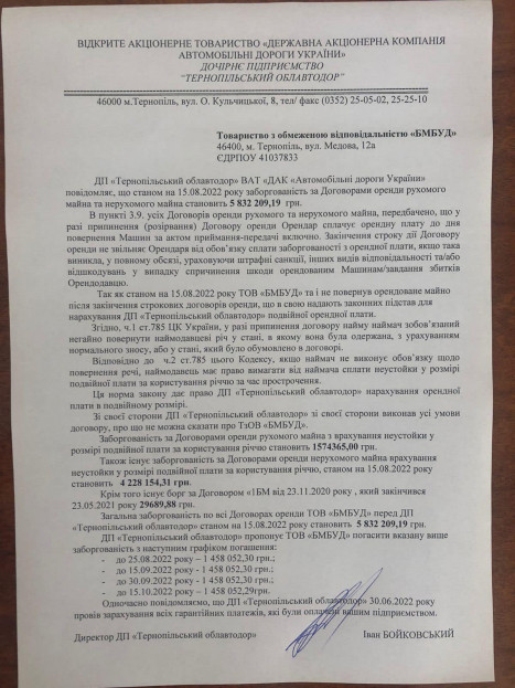 Але при цьому є державні підприємства з купою техніки які давно не працюють. Автотранспорт просто стоїть. Для прикладу ДП ,,Тернопільський облавтодор”. Станом на 2020 рік підприємство перебувало в процедурі судової санації , а згодом почалось процедура розпорядження майном. Простіше – підприємство банкрот. Працівники звільнені, жодних робіт не виконує. Але згідно довідки 100 одиниць автотранспорту „на ходу“. От це виявилось самим цікавим.