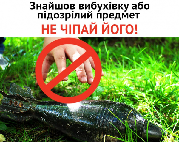 Громадяни, пам’ятайте, якщо ви знайшли предмет, який зовні нагадує боєприпаси, або є підозрілим – не торкайтеся його! Про знахідку негайно повідомляйте рятувальникам, зателефонувавши за номером телефону «101». Правильно і безпечно знешкодити вибухонебезпечні предмети здатні лише досвідчені фахівці. Ні в якому разі не намагайтеся робити цього самостійно, адже це може призвести до трагічних наслідків!