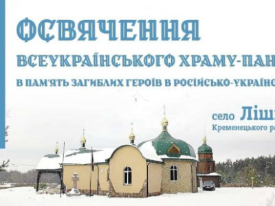 30 грудня відбудеться велична подія не лише для нашого краю, а й усієї країни – освячення Всеукраїнського храму-пантеону в пам’ять про загиблих в російсько-українській війні, який розташований у селі Лішня, що на Кременеччині.