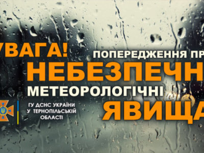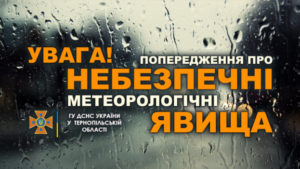 За повідомленням Тернопільського обласного центру з гідрометеорології, в другій половині дня із збереженням до кінця доби 5 серпня на території Тернопільської області та в м.Тернопіль місцями очікуються значні дощі, град, шквали 17 – 22 м/с.