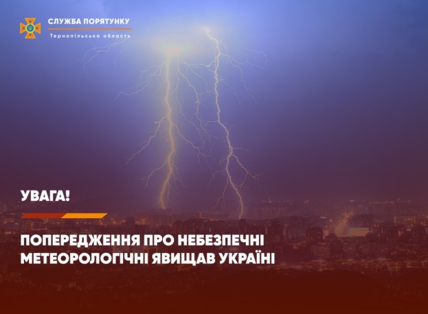 Протягом 13 липня в Україні, крім східної частини, очікуються грози. Вдень 13 липня також у західних областях місцями град та шквали 15-20 м/с. Про це повідомило Головне управління ДСНС України у Тернопільській області.