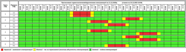 Згідно вказівки НЕК “Укренерго”, 11 грудня.2025 року на території Тернопільської області діятиме Графік погодинних відключень (ГПВ).