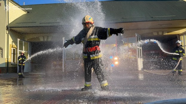 Бучацькі рятувальники в найкращих традиціях пожежно-рятувальної служби провели Миколу Хмарного на заслужений відпочинок – облили з брандспойтів холодною водою.