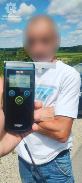 Водій погодився пройти огляд на стан сп’яніння на місці зупинки транспортного засобу за допомогою алкотесту Драгер. Результат —позитивний. Прилад зафіксував 2,92 проміле алкоголю в крові водія.