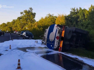 Учора, 9 травня, о 18:25 рятувальники отримали повідомлення про ДТП на автодорозі Н-18 «Івано-Франківськ – Тернопіль». Між селами Ст. Брикуля та Дарахів, що на Теребовлянщині на узбіччя перекинувся сідельний тягач. За попередньою інформацією, він перевозив 20 т дизпалива.