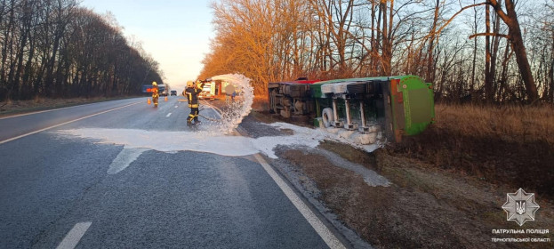 На автодорозі М-09 Тернопіль — Львів — Рава-Руська, поблизу 11 км, перекинулася вантажівка з паливом. Про це повідомила патрульна поліція Тернопільської області.