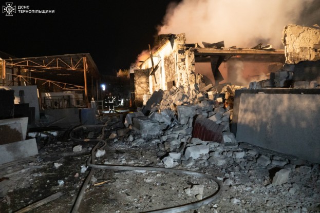 Під час нічної атаки ворог завдав удару по одному з промислових об’єктів на території області, внаслідок чого виникла масштабна пожежа. Для оперативної ліквідації наслідків були залучені 45 рятувальників на 12 одиницях спеціальної техніки та 12 поліцейських на 4 одиницях спеціальної техніки.