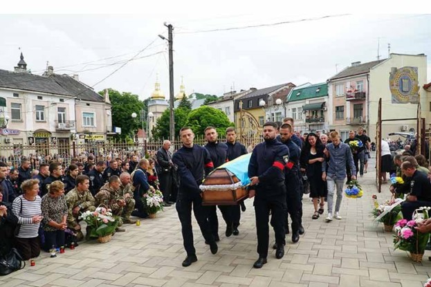Провести в останню путь захисника до Теребовлі прибули його побратими з Маріуполя, товариші, керівництво поліції Тернопільщини.