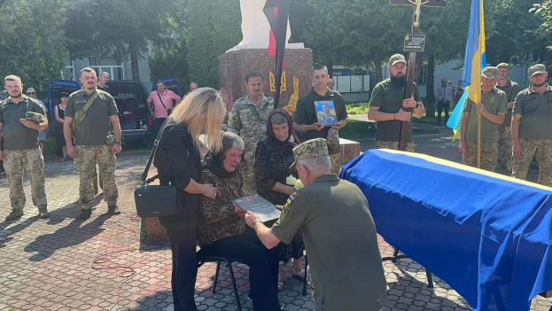 Почесну грамоту від Головнокомандувача ЗСУ та Прапор, яким була накрита домовина було вручено дружині та матері загиблого.