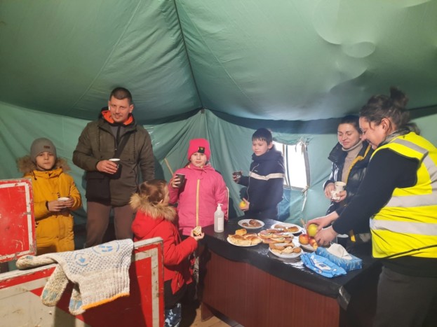 Щодня у наметі зупиняються близько 500 українців, котрим довелося покинути свої домівки у областях, де тривають бої з окупантами. Це діти, старенькі, жінки при надії. Це родини, у яких більше немає дому. Це водії, котрі мужньо вивозять з-під обстрілів мирних жителів та доставляють гуманітарні вантажі. Це наші воїни.