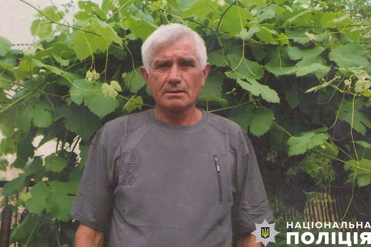 Прикмети: зріст близько 175 см, середньої статури, волосся сиве. Був одягнений у чорний костюм та синю сорочку. Пересувається за допомогою дерев’яної палки.