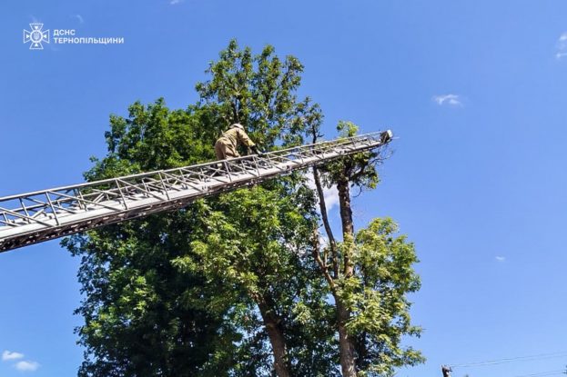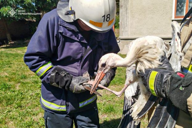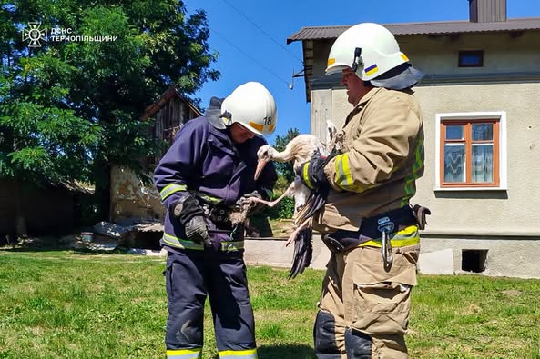 19 серпня до Служби порятунку надійшло повідомлення про лелеку, який потрапив у біду — птах заплутався в мотузці прямо у своєму гнізді в селі Вибудів Козівської територіальної громади Тернопільського району та не міг самостійно вибратися.
