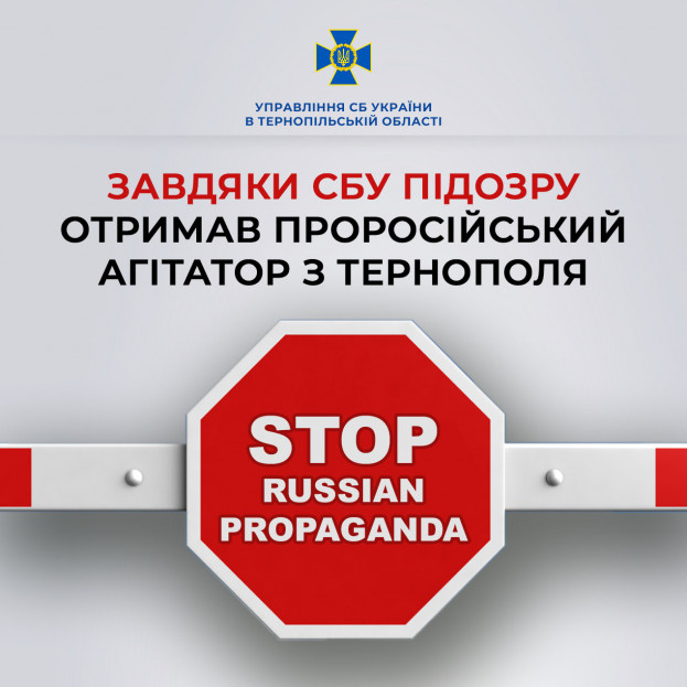 За матеріалами СБУ підозру отримав черговий прокремлівський агітатор, який заперечував збройну агресію рф та переконував тернополян, що в Україні громадянська війна.
