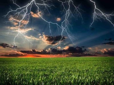 6. Якщо ви опинилися в полі, знайдіть заглиблення в землі. Бажано, щоб місце було сухим, адже волога земля сильніше проводить електрику. Не лягайте, краще присісти, щоб мати якомога менше площі прилягання до землі.