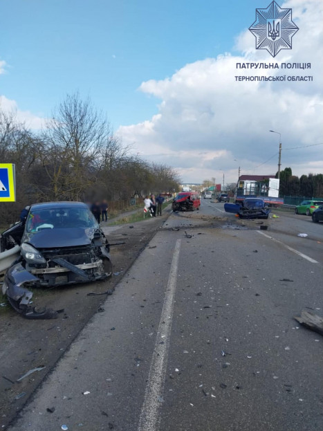 31 березня на Тернопільщині в аварії зіткнулись три автомобілі. Про це повідомили в патрульній поліції Тернопільської області.